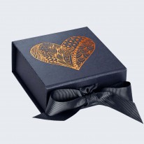 | Small (5x5x2”), Medium (8x8x3”), Large (12x12x4”) | Rigid Cardboard, Textured Kraft, Recyclable Stock | Foiling, UV Coating, Embossing |